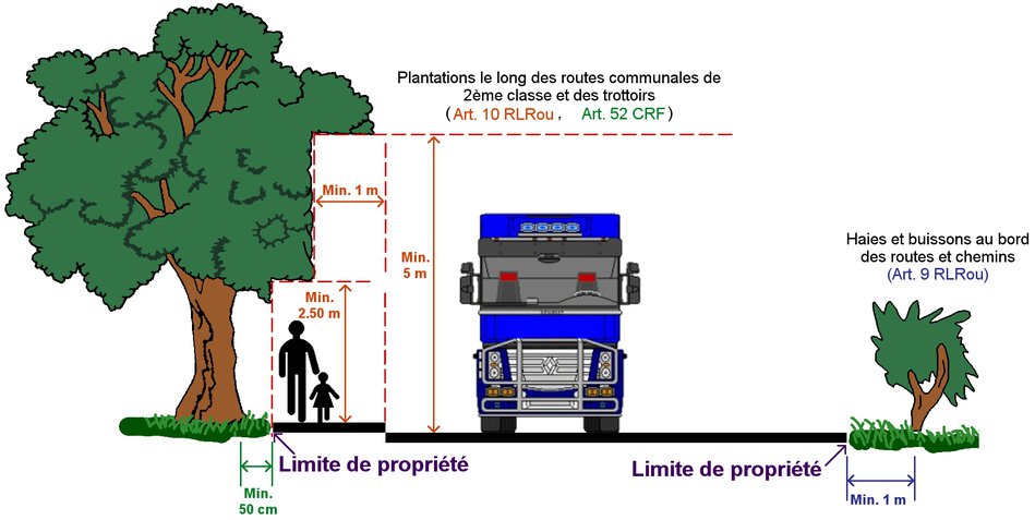 Aussi, dans l’esprit de la réglementation du Code général des collectivités territoriales et du Code de la voirie routière, nous vous demandons de veiller à la taille ou l’élagage de toute végétation plantée en bordure de route afin qu’elle ne dépasse pas l’aplomb en limite du domaine public et qu’elle ne touche pas de conducteurs aériens (EDF, Télécom, éclairage public).