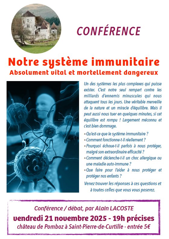 Conférence présentée par Alain Lacoste parlant de notre système immunitaire.
