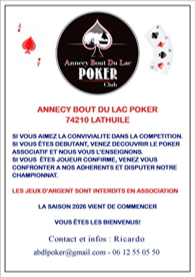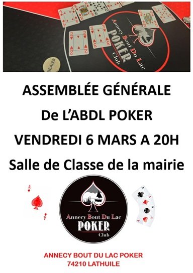 Assemblée générale de votre association ABDL POKER vendredi 6 mars à 20h00.