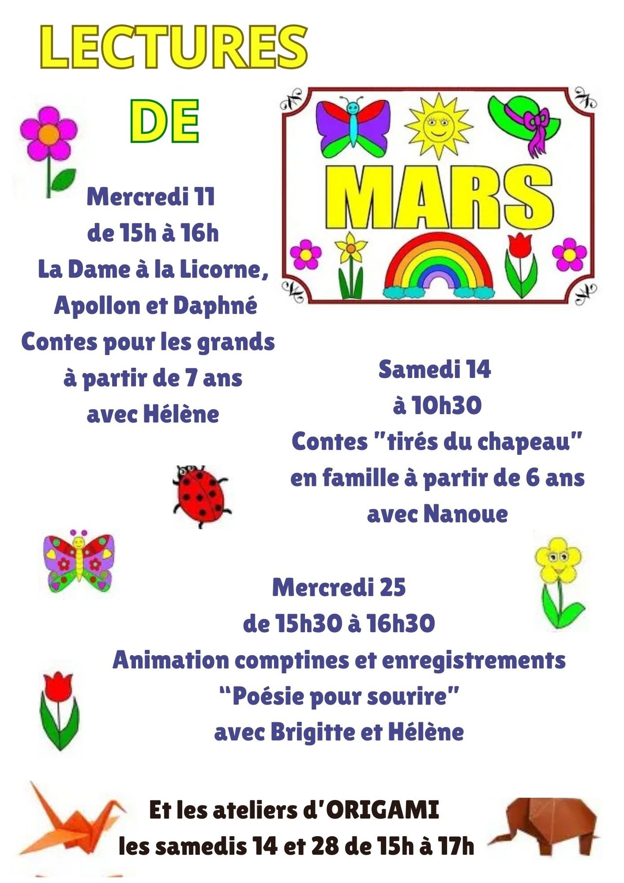 - Mercredi 25 mars de 15h30 à 16h30